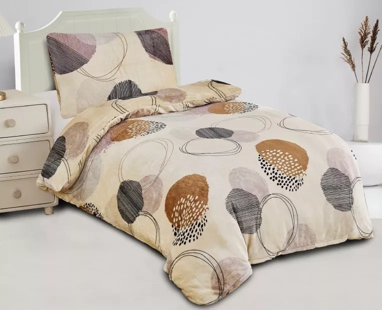 Hebučké mikroplyšové obliečky Kruhy hnedé sú ideálnou voľbou pre zimné či chladné dni vďaka svojim výborným termoregulačným vlastnostiam