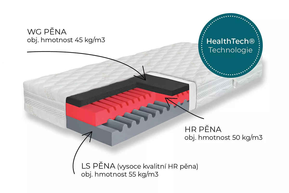 Technológia HealthTech, testovaná na Univerzite v Padove, preukázateľne redukuje výskyt vírusov a baktérií (vrátane SARS-CoV-2) takmer na nulu. Zaisťuje tak hygienickejšie prostredie pre spánok a predlžuje životnosť matraca.