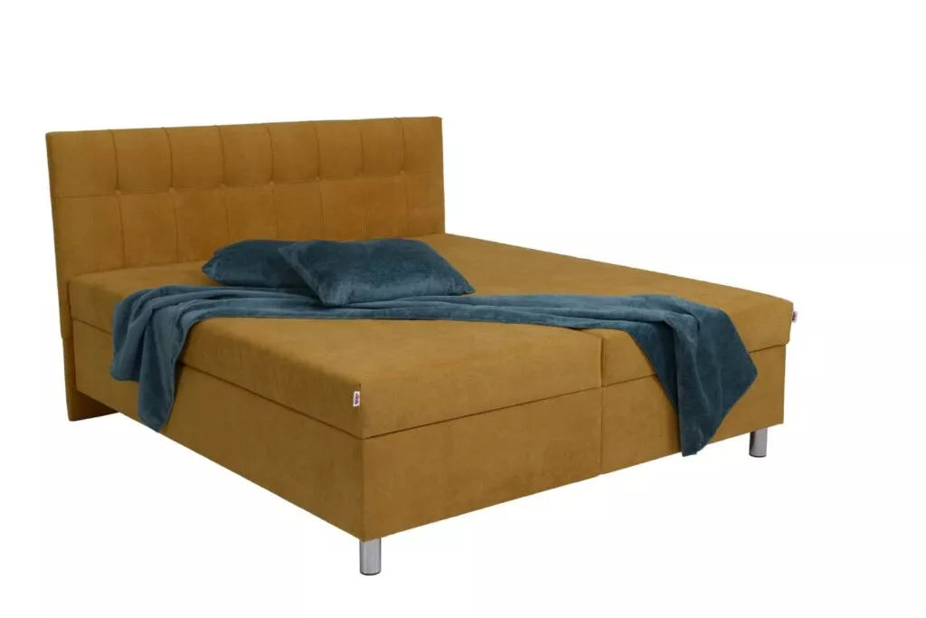 Čelo postele je ozvláštnené výrazným prešitím, čo podčiarkuje eleganciu lôžka. Stabilitu postele zaisťujú chrómové nohy s výškou 11cm. Výška ložnej plochy bez toppera je luxusných 58cm.