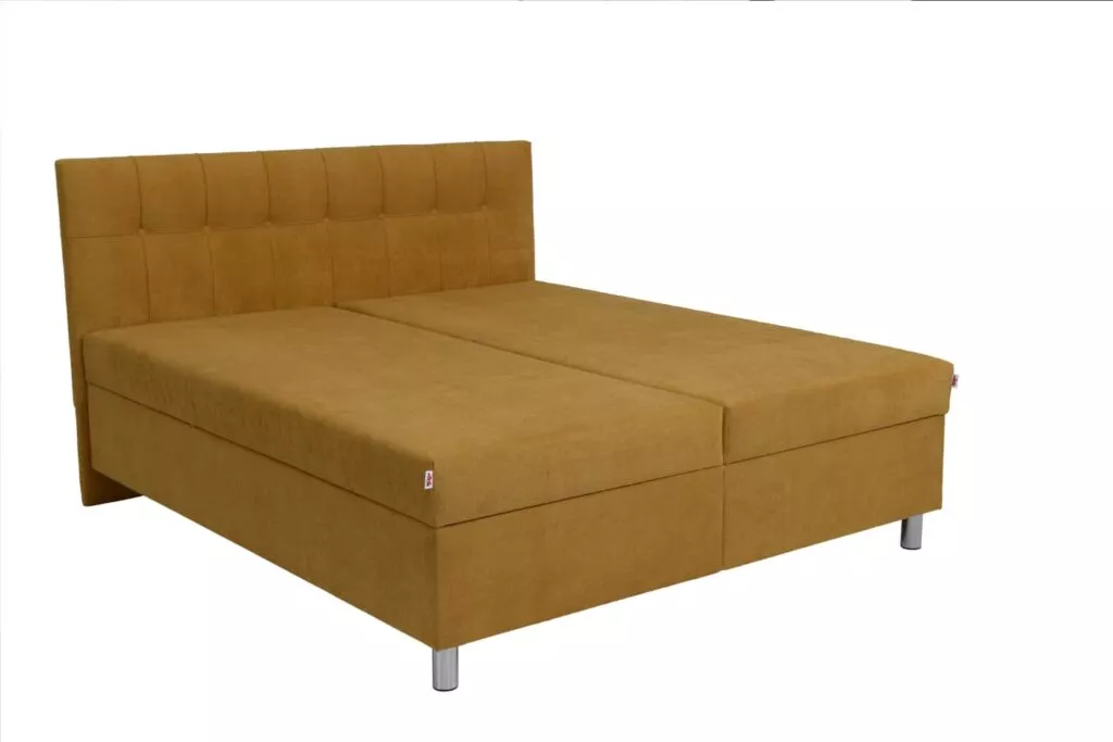 Čalúnené dvojlôžko Coralo typu boxspring s vodorovne prešívaným čelom. ...