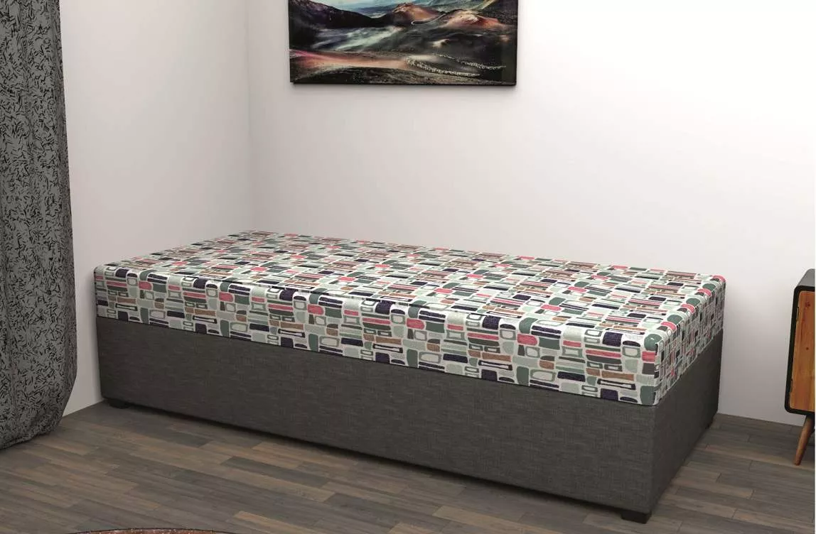 Na úvodnom obrázku je posteľ v kombinácii látok Paris 5 a Walker 9 (vzor).