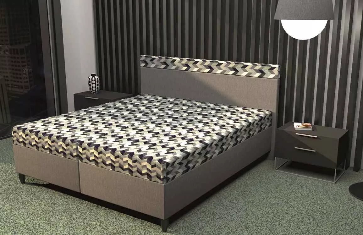 Čelá postele s veľmi zaujímavým prevedením zaujmú na prvý pohľad. Na úvodnom obrázku je posteľ v kombinácii látok Riviera 41 a Walker 5 (vzor).