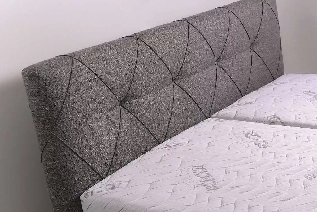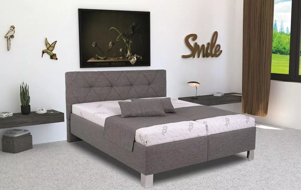 Na úvodnom obrázku je posteľ v látke Basic 979 so základným korpusom. Čelo postele je dekoratívne prešité, čo podčiarkuje eleganciu lôžka.