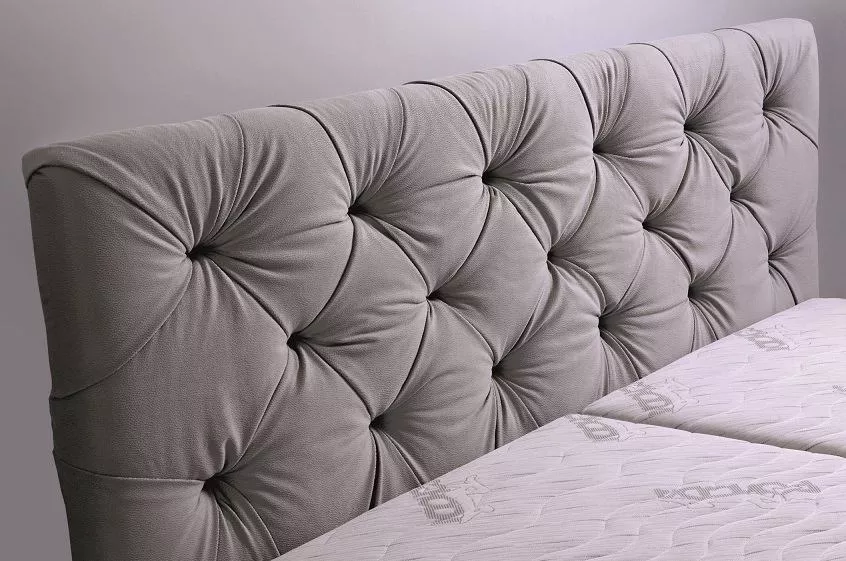 Čelo postele s dekoratívnym prešitím podčiarkuje eleganciu lôžka.