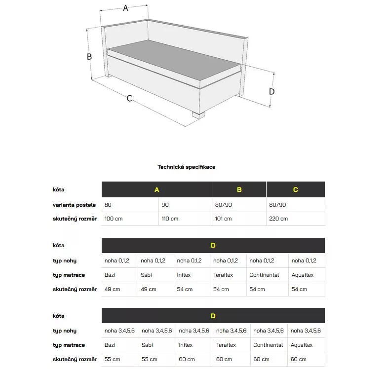 - Voľne ložný matrac podľa Vášho výberu
