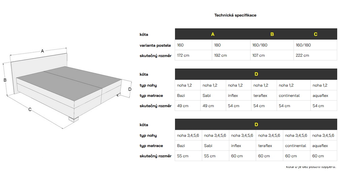 Nosnosť roštu 130 kg. Nosnosť matraca 110/130 kg podľa použitého matraca.