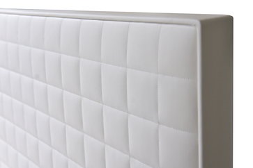 Čelo postele je zhotovené z DTD 16 mm. Hrúbka čela je opticky po obvode rozšírená pásikom MDF so šírkou 9 cm a hrúbkou 6 mm. Čelo je prešité na štvorčeky 10x10 cm a je vystlané polyesterovým rúnom. Zadná časť je začistená netkanou čiernou textíliou.