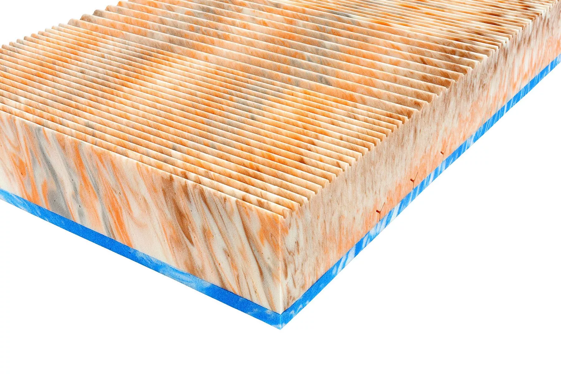 Matrac Monika spája gélovú hybridnú penu na mäkšej strane Soft s pružnou a odolnou penou Flexifoam na strane Hard. Vďaka gélovej zložke matrac príjemne chladí, odvádza teplo a napomáha správnej termoregulácii počas celej noci. Hybridná pena sa zároveň výborne prispôsobí tvaru tela a poskytuje pružný a mäkký pocit pri ležaní.