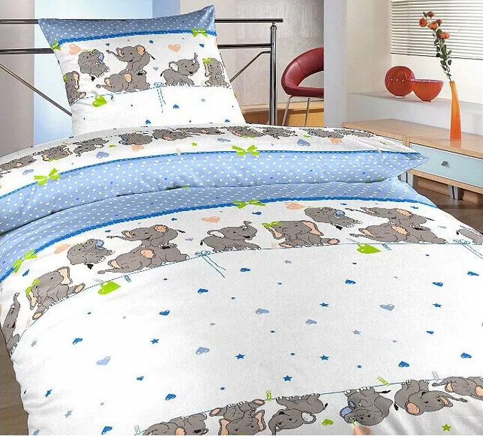 Detské obliečky bavlna krep Slony denim Veselé detské obliečky Slony denim s hravým motívom sloníkov na bielom podklade s modrými detailmi ...