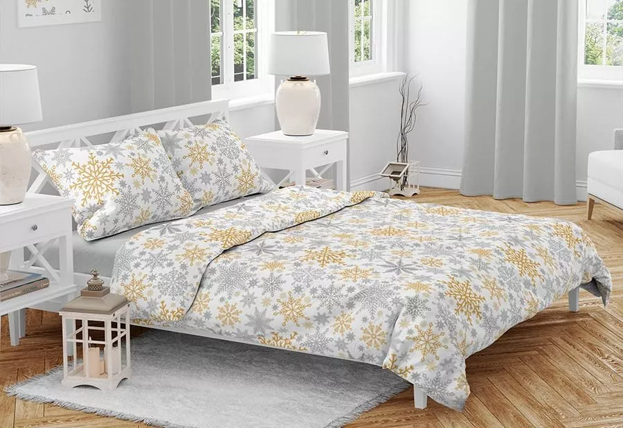 Bavlnené obliečky Vločky zlaté prinášajú moderný vzhľad, kvalitu a pohodlie, ktoré oceníte každú noc.