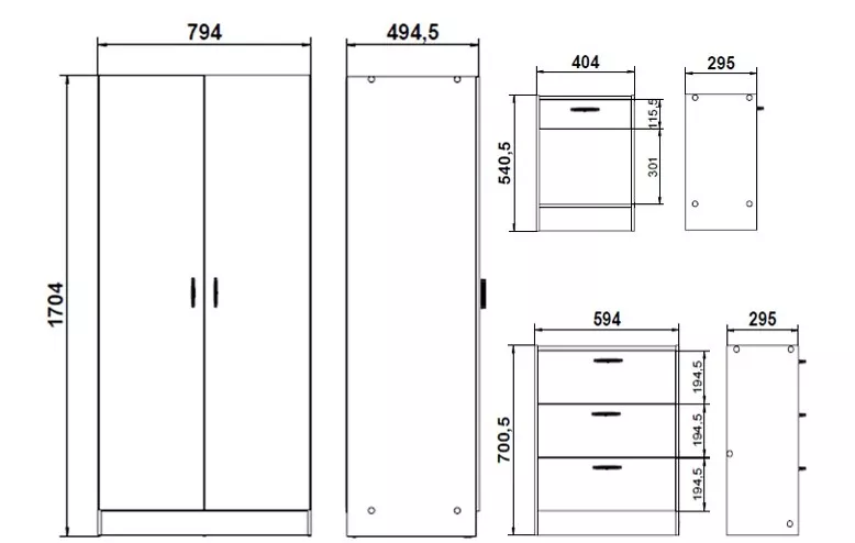 Zostava Start 077 je praktické riešenie pre spálňu, študentskú izbu i menší byt, kde chcete zladený nábytok v jednom štýle. Kombinuje šatníkovú skriňu, komodu a nočný stolík do uceleného setu, ktorý pôsobí čisto, moderne a zároveň nepreplácane. V praxi oceníte hlavne to, že základné úložné potreby vyriešite jedným nákupom? oblečenie do skrine, drobnosti do komody a všetko potrebné na noc po ruke v stolíku.