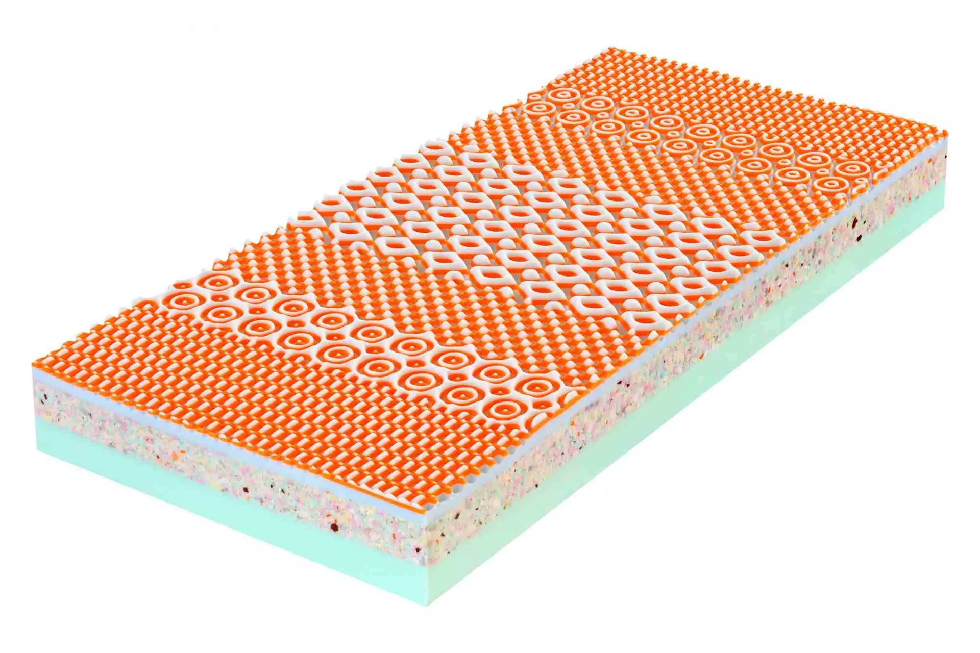 Sendvičová konštrukcia: Matrac využíva sendvičovú konštrukciu z pružných pien Flexifoam s pamäťovou penou. Táto kombinácia poskytuje tuhosť, pružnosť a pamäťové vlastnosti pre lepšiu podporu tela.